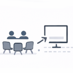 누가 사용하더라도 회의 전환과 화면 공유가 끊기지 않도록 구성합니다.