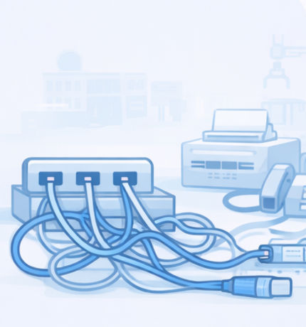 일반 사무실 기준의 네트워크는 서비스 장애와 관리 문제로 이어질 수 있습니다.